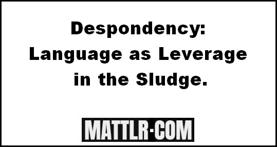 Despondency is that shit feeling that resides in a post-apocalyptic crud-hole between hopelessness and apathy. As an emotion, it’s legit, and it’s a signal, but it’s a faint signal that can lead to horrible stuff…